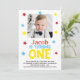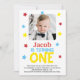Get ready to celebrate your little one's big day in style with our vibrant and exciting 1st birthday invitation! Featuring a minimalistic design with lively stars and a photo template, this invitation is the perfect way to invite your loved ones to the party. The vibrant colours of yellow, blue, and red pop against a crisp white background, adding an extra touch of excitement to the occasion. And the best part? This invitation is gender-neutral, making it perfect for any little boy or girl. So, swap out the photo and get ready to make your child's first birthday one to remember with our amazing invitation!