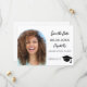On front: Add your own vertical size photo of the graduate. Photo arch frame. A chic white background, black text. Templates for a name and date. The name and the text: Save the Date are written with a modern hand lettered style script. With a cap, tassel topper.