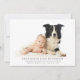 Simple modern baby photo with dog birth announcement. You must replace this photo with a photo of your own newborn with a landscape orientation photo that works best in the space.