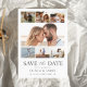 Create your own wedding save the date cards featuring your favourite photos. Add your names and details to an elegant minimalist typography design alongside a simple photo collage grid. Additional full page photo on reverse side.