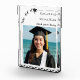 This elegant photo acrylic photo block features a clean modern layout, customizable graduation details, and space for a favorite senior portrait. Perfect as a display piece at the graduation party — and even more meaningful afterward as a long-lasting memory gift.
