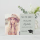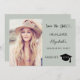 On front: Add your own vertical size photo of the graduate. A trendy muted sage green background, black text. Templates for a name and date. The name and the text: Save the Date are written with a modern hand lettered style script. With a cap, tassel topper.