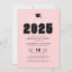 A sleek and modern graduation party invitation featuring "Class of 2025" in large white text at the top, set against a blush pink background for a soft and stylish look. A customisable graduation cap icon sits just above, tying into the theme. Below, the graduate’s name and event details are displayed in clean, modern fonts for an easy-to-read layout.