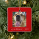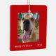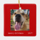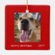 Simple Modern Red Frame Family Pet Photo Holiday Ceramic Ornament