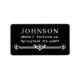 Simple modern white on black return address labels featuring a classic serif font above a clean lined scroll for a chic, minimal feel.