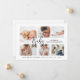 Announce the arrival of your new baby with our simple and modern script baby photo collage birth announcement card. The design features a six photo layout to display your new baby's photos. Customise with baby's name, birthdate arrival, and birth stats. The reverse side features three repeated photos, greeting, and love from.