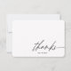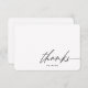 Chic thank you set in thin black script on a white background. Type in a personal message on the back or