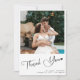 Elegant simple trendy modern handwriting whimsical calligraphy script wedding 2 couple photos name and text message personalised thank you heart card template. Easy to customise on both sides with your text and pictures.