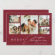 Simple Modern Script Photo Collage Red Christmas Holiday Card