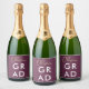 Celebrate your graduation in style with a glass of sparkling wine, complete with a modern, elegant label. This sophisticated burgundy design features bold, large typography saying GRAD and a handwritten, modern name in luxurious fake gold. The label is simple yet stylish, making it perfect for any graduation party or event. Customisable text allows you to personalise the label to suit your celebration, adding a unique touch that guests will remember. Whether you're hosting an intimate gathering or a grand celebration, this chic label is the ideal way to elevate your graduation party and impress your guests.