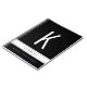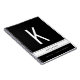 A personalized notebook with a black and white cover featuring a great big huge modern initial letter, name, and notebook or journal title or subject custom printed on the front in chic, modern fonts. Page size: 6.5" x 8.75".