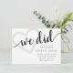 Simple "we did" reception invitation invitation featuring a fun, casual hand-lettered script with a heart. The classic design includes a modern handlettered quote typography overlay. For other colours or matching products, please visit the JustFharryn Zazzle store, or contact the designer, c/o Fharryn@yahoo.com All rights reserved. #bohochic #zazzlemade