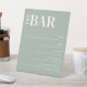 Simple modern bar menu sign for wedding drinks in sage green colour.