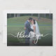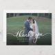 A great and thoughtful way to thank your friends, family, and coworkers who graced you their presence on your your wedding day with this modern photo thank you cards with script hand lettered "thank you" and a love heart.