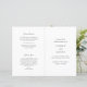 Elegant folded wedding program featuring a simple design with a modern sans serif font and an elegant script font.