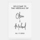 Modern minimalist wedding welcome sign featuring simple script calligraphy typography.
