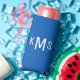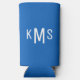 Simple White Monogram Seltzer Can Cooler. Sapphire Blue and White.