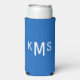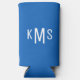 Simple Modern White Monogram Sapphire Blue Seltzer Can Cooler