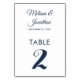 Simple modern white Prussian blue elegant wedding Table Number