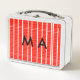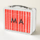 This is a standard metal lunchbox that appears to work just fine. We designed this box ourselves with an uploaded photo and custom text on the front and back. It looks absolutely beautiful except the front of the lunchbox is not centered like it shows in the photo. The print borders don't align with the inset flat part of the box where the preview photo online showed it perfectly centered in there. The back looks nice and centered though.