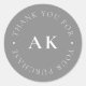 Simple Monogram Business Packaging Thank You Grey Classic Round Sticker