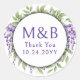 Simple Thank You Monogram Elegant Purple Wedding Stickers Labels features your personalised monogram in modern purple calligraphy script typography surrounded by elegant wisteria flowers. Perfect for weddings, engagement parties, anniversay, birthday, events and celebrations, Quinceanera, baby shower, bridal showers and more. Designed by Evco Studio www.zazzle.com/store/evcostudio