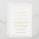 Simple Wedding Invitation featuring a modern yet elegant design with your two letter monogram at the top and your details surrounded by a thin border. This design is printed with real gold foil. A chic and stylish design that is great for a minimalist couple.
