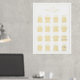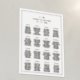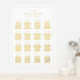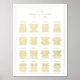 Simple gold foil wedding seating chart featuring an elegant and timeless design with your two letter monogram along with your names, date and seating chart surrounded by a thin border. All design elements are printed in real foil. The template has four columns with sixteen tables of eight guests as an example, but can be customised for your number of tables and guests. A clean and classic design perfect for a couple who wants a traditional style design with a modern touch.