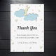 Cute and simple white baby shower thank you card with a starry night and yellow moon behind some blue clouds. The illustration is made so it looks in three dimensions but note that it's just an effect and this is actually a print. All the text is in grey and can be personalised. Illustrated and designed by Patricia Alvarez.