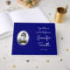 This simple funeral or memorial guestbook features the message "You’ll be in our hearts forever,", along with a customised name, and birth/death dates. It also features a custom photo. It could be used to record condolences for the relatives and friends of somebody who has recently passed on.