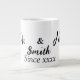 This Mr and Mrs Giant Coffee Mug design is a perfect way to start your day. With its simple and elegant design, it's a great addition to your morning routine. The oversized capacity ensures you have enough coffee or tea to kickstart your day. Whether you're enjoying a quiet morning at home or sharing a cup with your loved one, this mug is a delightful choice. Its high-quality construction and charming design make it an ideal gift for weddings, anniversaries, or any special occasion. It can be personalised with the couple's names and marriage date. You can choose to keep "Mr & Mrs" as is or modify it to create two separate cups, one for Mr and one for Mrs. This makes it a versatile and thoughtful gift for couples.