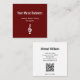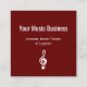 Music lessons business card, on a red background and a white treble clef symbol. With customisable lettering, you can add your own information. You also add your website to allow for connection with a QR code. Great for promoting your musical business.