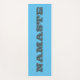 Simple, stylish aqua blue and soft grey yoga mat printed with the word NAMASTE.