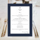 Simple Nautical Anchor Wedding | Navy Blue Menu