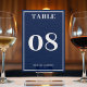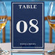 Simple nautical blue and white wedding reception table number card with border. Personalise it with your event details. Change the number for each table you have.