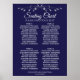 Make your wedding reception beautiful with this seating chart. Designed as a part of our Silver & Navy Elegant Wedding Suite, they feature a simple yet elegant design with white text on a navy blue background with a silver faux foil floral border. This chart shows table assignments so your guests will have an easy time finding the right table.