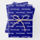 A pattern of white display text is on this navy blue wrapping paper. You can edit the text to show a name or another custom message.