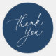 Simple Navy Blue Calligraphy Script Thank You Classic Round Sticker