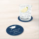 Modern graduation paper coaster featuring a simple and masculine design with "Class of Year" in large bold typography along with a grad cap and the graduate's name in white over a navy blue background. The background may be changed to any colour you wish. These paper coasters are perfect for a guy graduate and are a great way to add a personal touch to your graduation party.