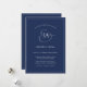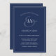 Simple Navy Blue Monogram Wedding Invitation. Stylishly impress your wedding guests with this trendy dark blue wedding invitation featuring a beautiful white script, with the bride and groom's initials on a navy blue background. This Invitation has a stunning royal blue design, with modern and minimal vibes, perfect for your simple, trendy, minimalist wedding.