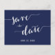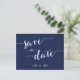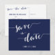 Simple navy blue and white Save the Date wedding postcards with customisable text