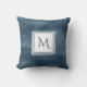 Simple Navy Blue Subtle Marble Modern Monogram Cushion