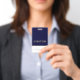 Professional visitor badges with template text dual-side design you can use to replace with your information. Used as temporary passes for company visitors, event and convention guests and more.