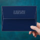 Simple Navy Holiday envelope. Elevate your heartfelt sentiments with our chic personalised photo holiday envelope. This stylish keepsake, featuring a vintage typewriter font and space for 1 family photo, is a perfect blend of nostalgia and style. White text on a navy background amplifies its visual appeal. Personalise and make your memories timeless!