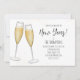 This design features a watercolor simple new years eve day party champagne wine celebration festive invitation, trendy stylish gold bubbly toast, a watercolor champagne flute glasses glass, elegant calligraphy script text font, a whimsical typography style design, a modern Christmas holiday glitter, classy-vintage retro cute simplistic, family friends get together party, new years eve invitations
