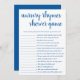 Nursery rhyme quiz baby shower or gender reveal party game (with answers below) featuring a fun, casual hand-lettered script. The classic design includes a modern handlettered quote typography overlay.