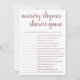 Nursery rhyme quiz baby shower or gender reveal party game (with answers below) featuring a fun, casual hand-lettered script. The classic design includes a modern handlettered quote typography overlay.