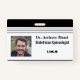 Simple Minimalist Obstetrician-Gynaecologists Doctor Badge on white and black. The template has space for basic information like name, medical centre name, address, ID, position, QR code, or barcode. Click on "personalise this template" for product customisation.