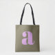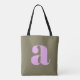 Simple Olive and Lilac Bold Retro Monogram Initial Tote Bag