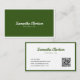 Minimal Bordered Olive Green and White Business card in Professional and Classic Handwritten Script typography with QR code and simple contact details.